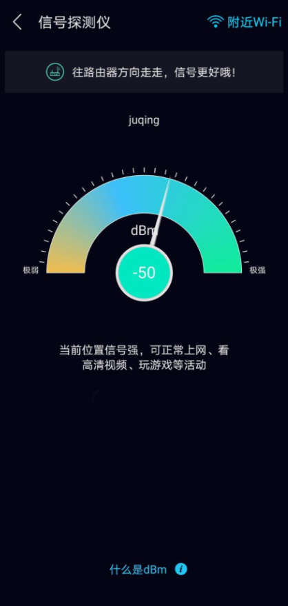 由于信号的路径不同,我们将“移动信号”和”Wi-Fi信号”进行分开检测。并通过dBM值来判断信号的强弱:
