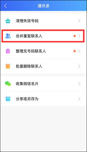 智能检测:自动检测已失效号码和重复联系人,智能清理合并