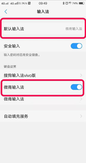 2、接着选择”微商输入法“为默认输入法;