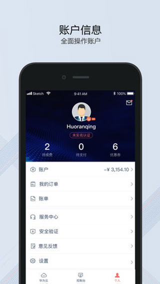 账户信息:提供充值、支付、续费、优惠券管理等功能,使用手机即可支付和续费。