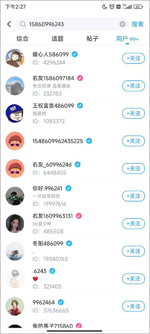 2、输入通讯录好友的手机号,点击搜索后,点击用户。