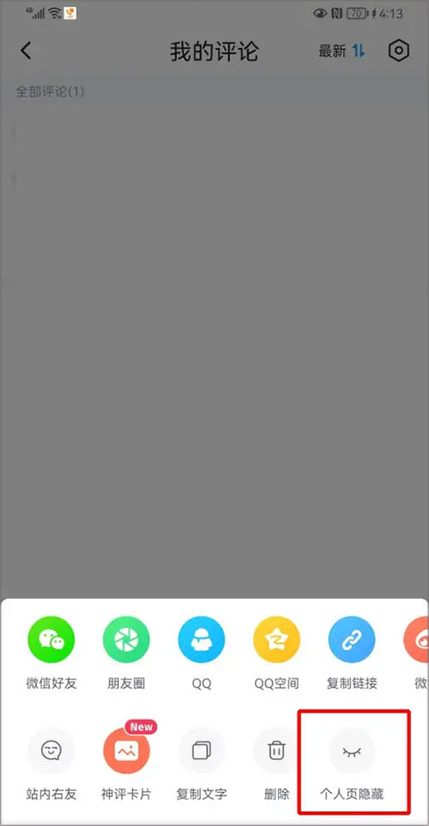 2、进入评论页面,选择要隐藏的帖子,长按帖子。