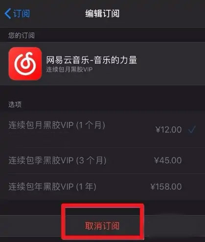 3、在订阅界面,找到网易云音乐会员,点击这里的取消订阅即可取消自动续费。