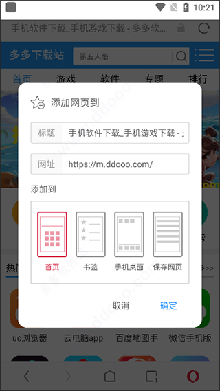4、接着根据需求设置标题,然后可选择添加到首页、书签、手机桌面、保存网页等操作
