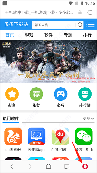 1、我们可以打开欧朋浏览器,点击一下右下角;