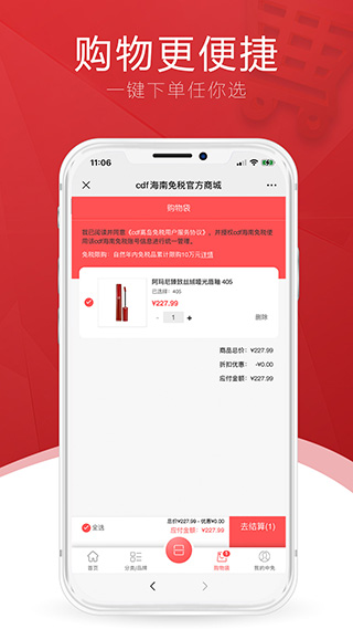 cdf海南免税苹果版是中免集团旗下的一款超级好用的手机购物软件,旨在为用户提供高质量高品质的商品,严格把控商品质量,用户可以在手机上挑选香水、腕表、箱包、配饰、美妆、生活等品类的商品,各个国际知名品牌的商品尽在这里,当用户使用该应用下单后,可以直接去线下店铺提货,减少人挤人的状况。另外,软件所提供的商品没有包含税收,因此购物价格低于有税市场,还拥有售前咨询、售中支持以及售后服务,让你享受超绝佳的购物体验。