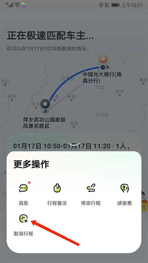3、进入到更多操作界面,选择下方“取消行程”选项,