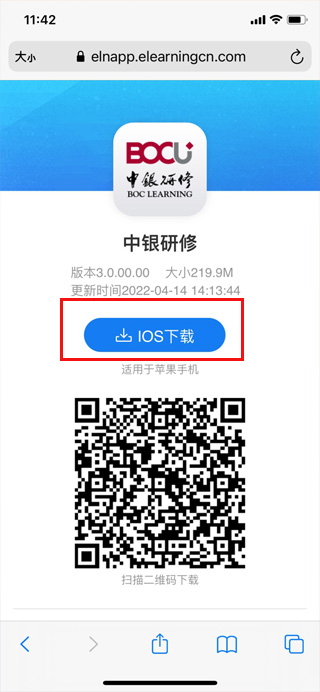 1、用苹果手机打开中银研修app苹果版,复制地址到苹果自带的浏览器Safari上;